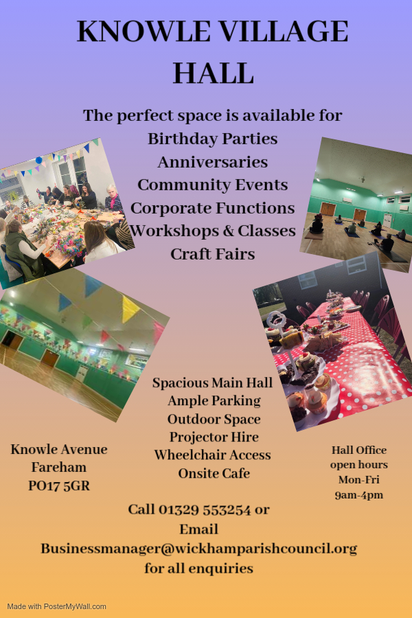 Victoria will be managing the sport & rec assets in both Wickham & Knowle including the Knowle Hall.